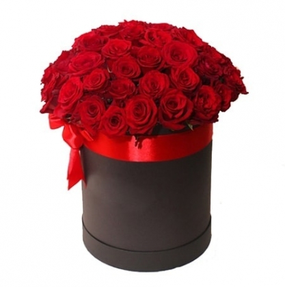39 красных роз в шляпной коробке